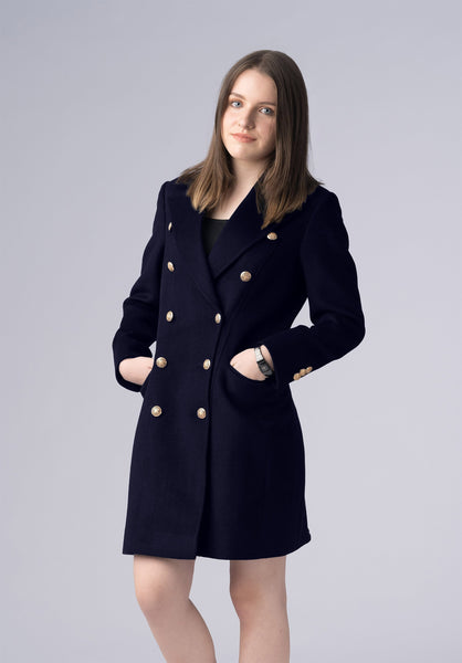 Product Description Crested buttons add signature Harrington embellishment to the front of a double-breasted cashmere coat tailored with sharp shoulders and peaked lapels.