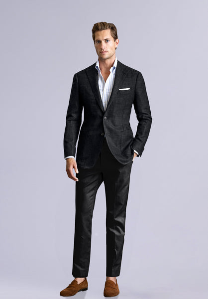These cotton linen-blended suits are the ideal balance of comfort and style. With their lightweight design and great air permeability, these suits are the perfect fit for warmer temperatures. Having a subtle texture adds intrigue and dimension to the suits. The fit is modern and slim, creating a polished silhouette. The suits are versatile and can easily be dressed up or down, making them a must-have addition to any wardrobe.
